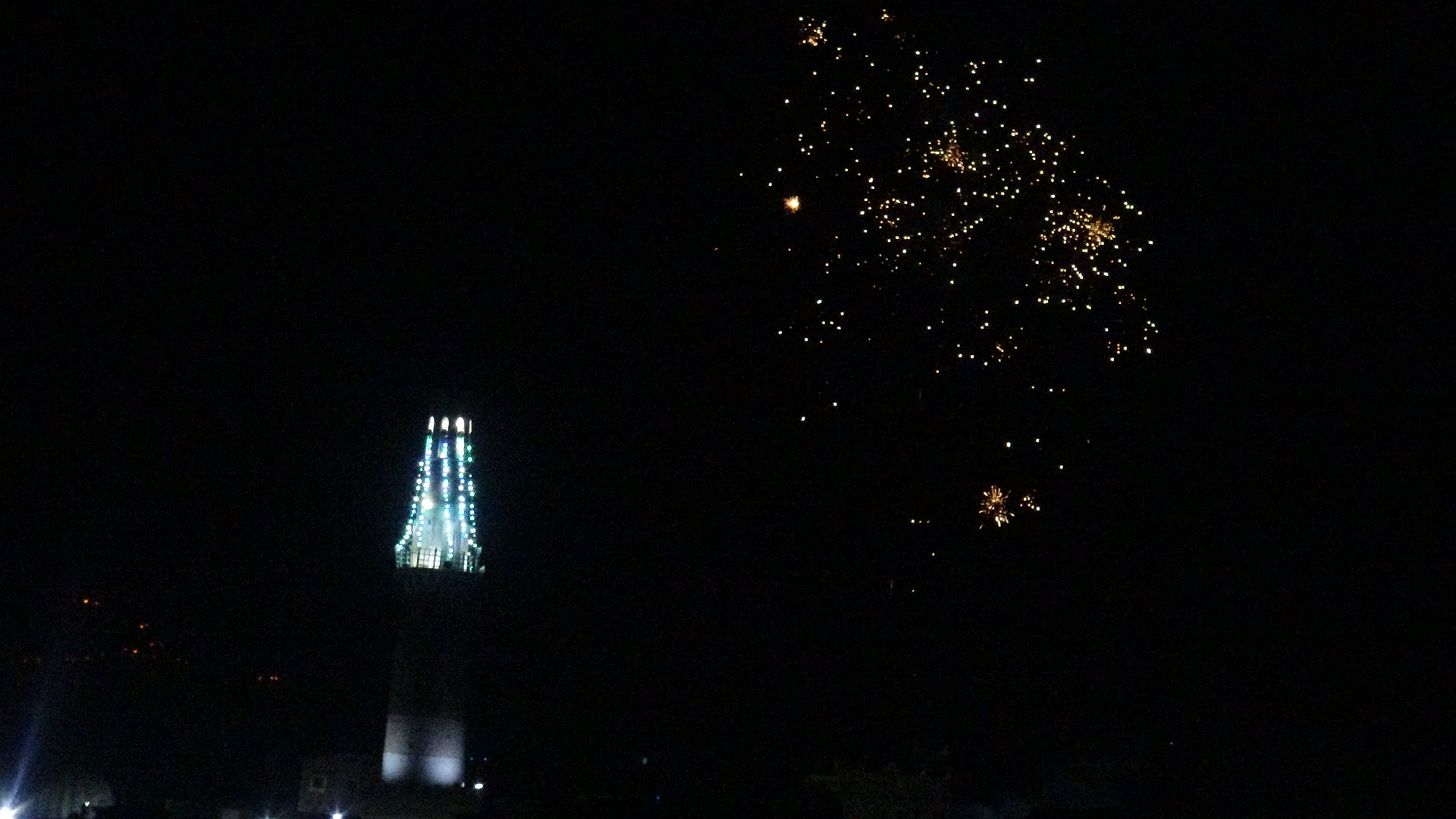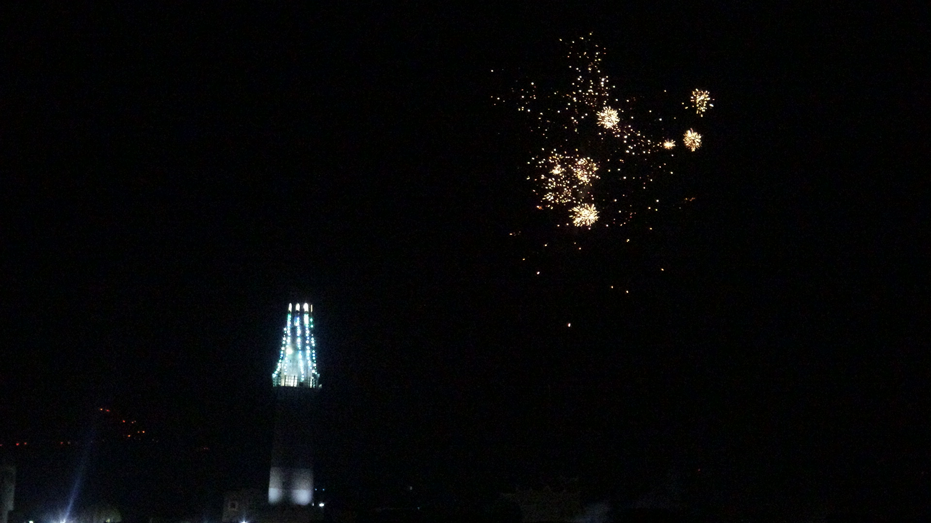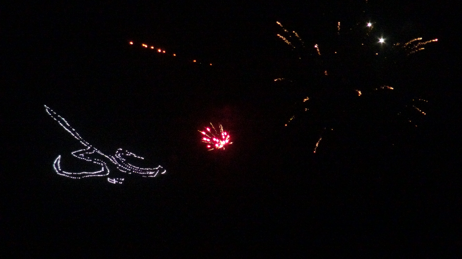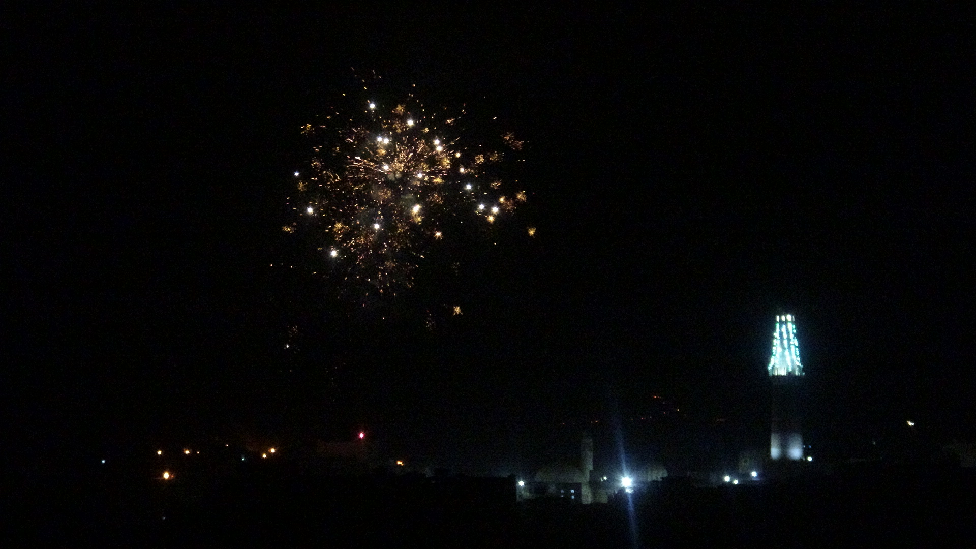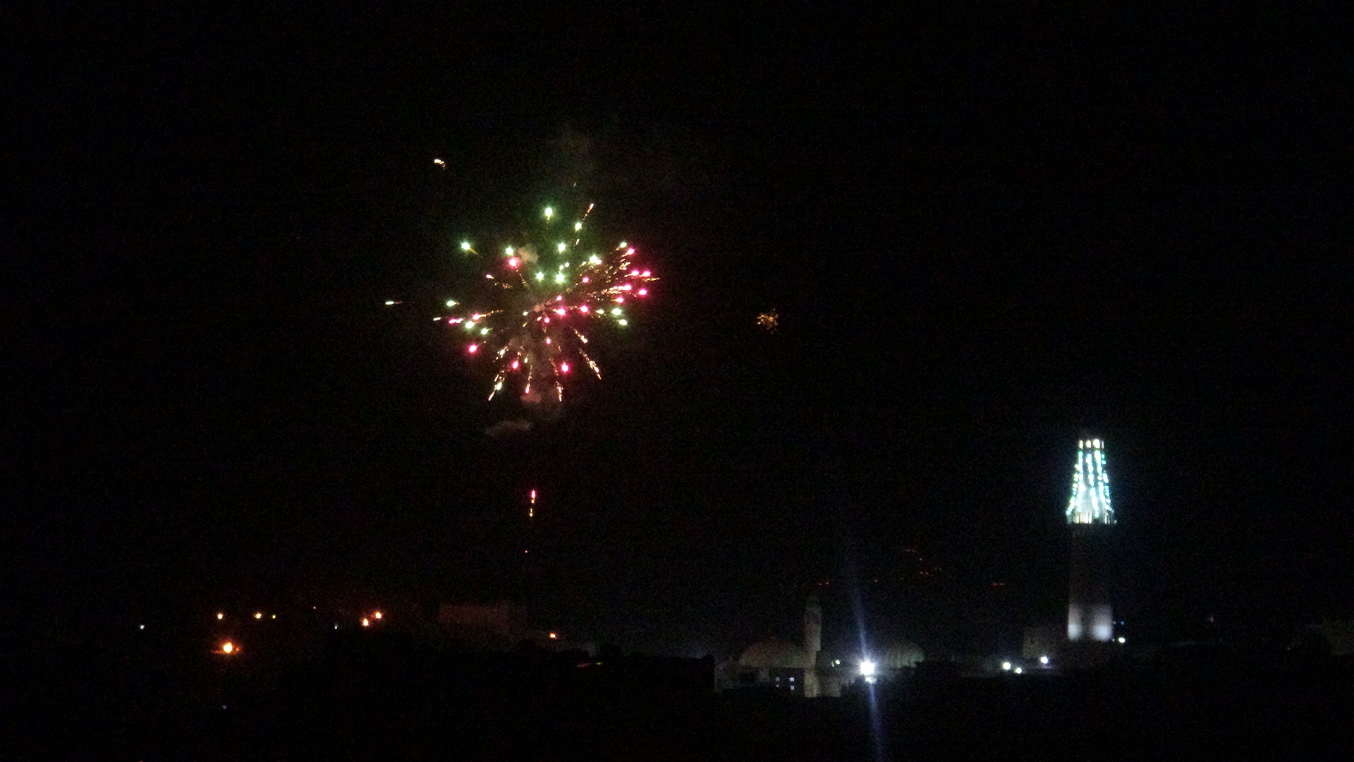 وأشتعلت سماء المدينة بالألعاب النارية الذي جعلھا أشبه بمدينة تتلألأ وكأنھا مدينة للنجوم الملونة تبعث للناظر بھجة الشعور، وتدخل قلب كل محب لأمير المؤمنين علي عليه السلام .