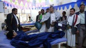 زار محافظ صعدة محمد جابر عوض ومعه وكيلي المحافظة محمد بيضان وعبدالله القاسمي ، جرحى الجيش واللجان الشعبية في مستشفيي الجمهوري والطلح بمناسبة حلول ذكرى مولد الرسول الأعظم محمد صلوات الله عليه وعلى آله.