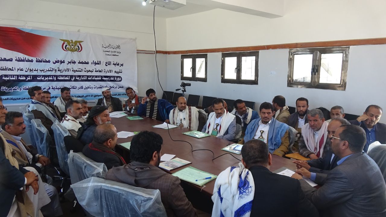 اختتمت في محافظة صعدة، اليوم، دورة تدريبية حول بناء القدرات القيادية – المرحلة الثانية، بمشاركة 14 من مدراء مديريات المحافظة، استمرت ثلاثة أيام.