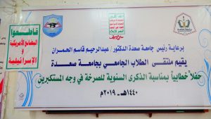 صعدة : ملتقى الطلاب الجامعي بجامعة صعدة يقيم حفل خطابي بمناسبة ذكرى الصرخة السنويه1440هـ