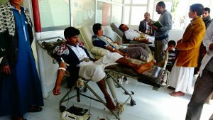 دشن #محافظ_صعدة محمد جابر عوض ومعه عدد من المسؤولين اليوم في المستشفى الجمهوري بمدينة صعدة حملة التبرع بالدم لجرحى الجيش واللجان الشعبية بمناسبة قدوم ذكری المولد النبوي الشريف 1441 هــ.