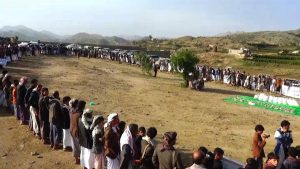 سير أبناء وقبائل مديريات خولان بن عامر بمحافظة صعدة قافلة عيدية للمرابطين من الجيش واللجان الشعبية في جبهات الحدود بمناسبة قدوم عيد الفطر المبارك.