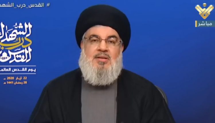 وقال السيد نصر الله في كلمة له عبر الشاشة بمناسبة يوم القدس العالمي الجمعة “يأتي يوم القدس العالمي بالتزامن مع ذكرى نكبة فلسطين التي اسست لقيام هذا الكيان الصهيوني الغدة السرطانية الشر المطلق وما تبعه من نتائج في هذه المقاومة”، واضاف “يوم القدس يأتي ايضا بالتزامن مع ذكرى انتصار 25 ايار 2000 الذي اسس لانتصارات وتحولات كبرى في المنطقة وفلسطين ومواجهة المشروع الصهيونية وتحرير فلسطين”.