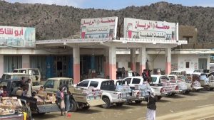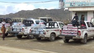 #صعدة : أبناء مديرية قطابر بصعدة يسيرون قافلة غذائية للمرابطين في الجبهات