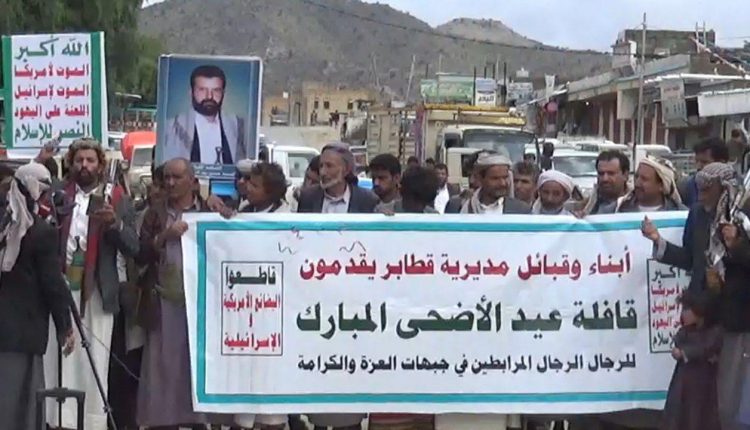 سير أبناء مديرية قطابر الحدودية بمحافظة صعدة قافلة غذائية عيدية دعماً لأبطال الجيش واللجان الشعبية المرابطين في الجبهات بمناسبة عيد الأضحى المبارك .