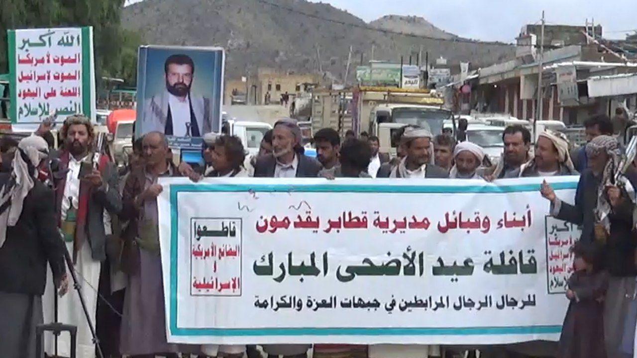وخلال تسيير القافلة التي تضمنت رؤوس من الأغنام والأبقار ومواد غذائية متنوعة نظم الحاضرون وقفة احتجاجية أدانوا خلالها جرائم العدوان الأمريكي السعودي بحق أبناء الشعب اليمني.