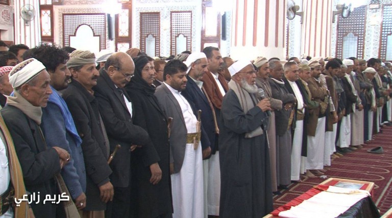 صنعاء:الالاف من أبناء العاصمة والمحافظات يشيعون جثمان الشهيد القاضي ربيد وأفراد أسرته السبعة