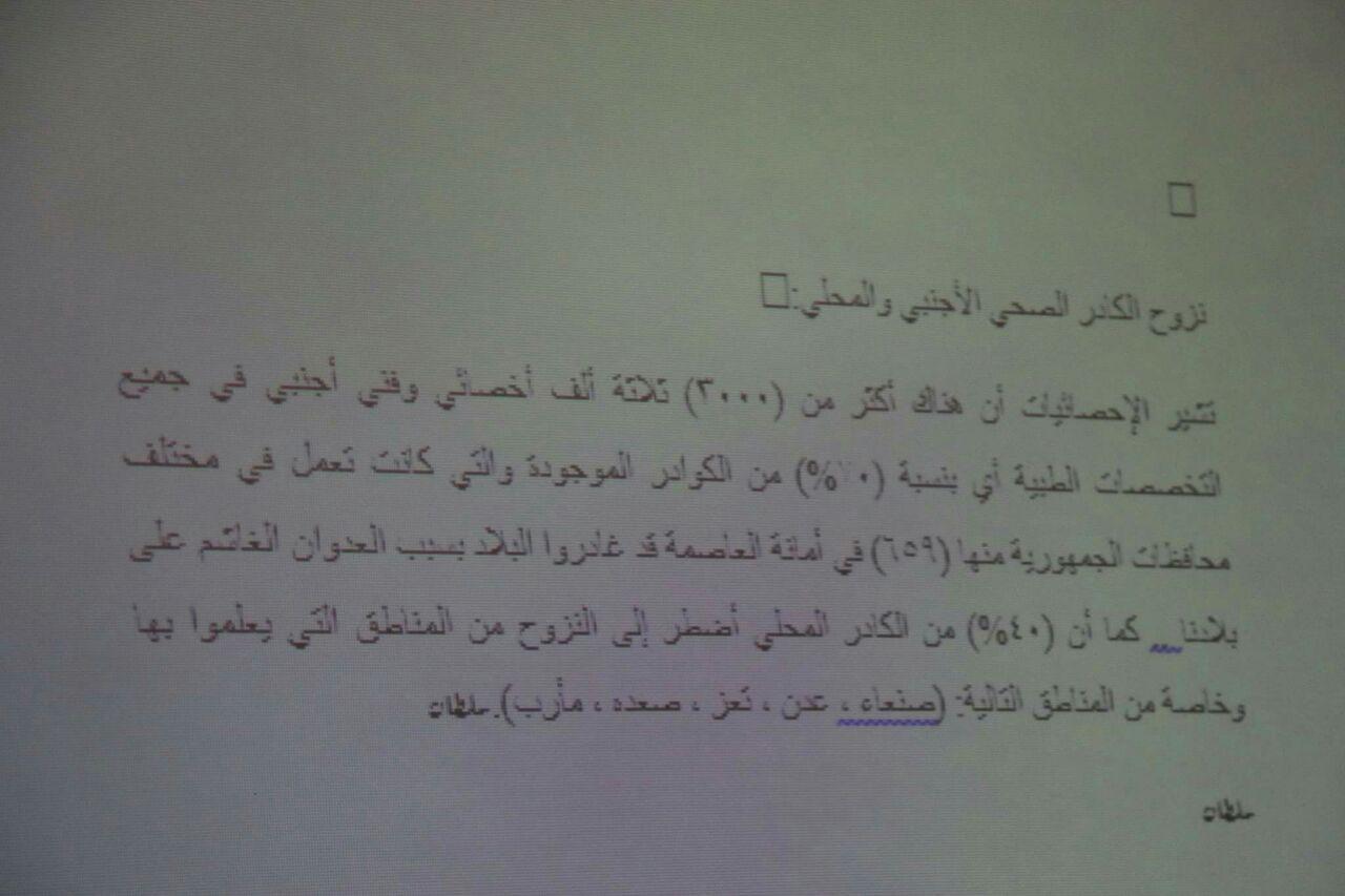 ولفت الى أن الخدمات الصحية مسئولية وطنية يجب ان نتكاتف من اجل عمل رؤية وخطط للوصول الى توفير احتياجات المواطنين في جميع محافظات الجمهورية في ظل هذا العدوان ، موجهاً رسالة الى المنظمات الدولية الى أن هذا المؤتمر ينعقد لعمل خطة طارئة للخدمات الصحية في بلادنا الذي يتعرض للعدوان السعودي الامريكي واستهدافه لكل مقوماته الصحية والبنية التحتية والمنشآت والإنسان.