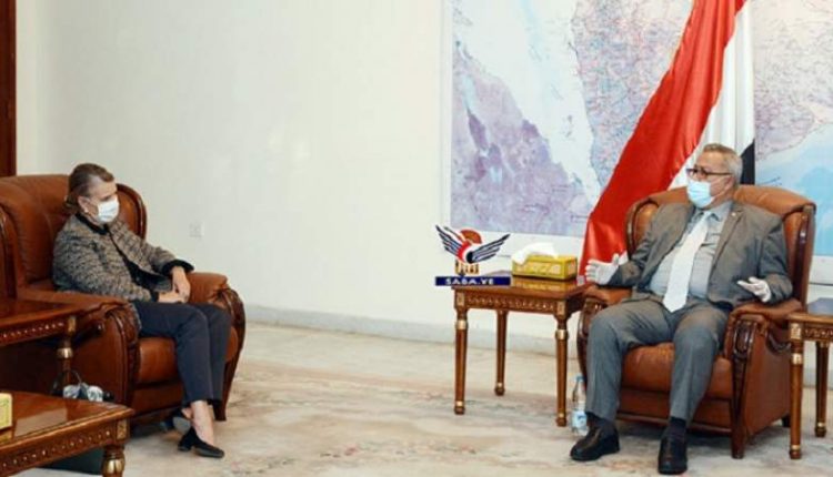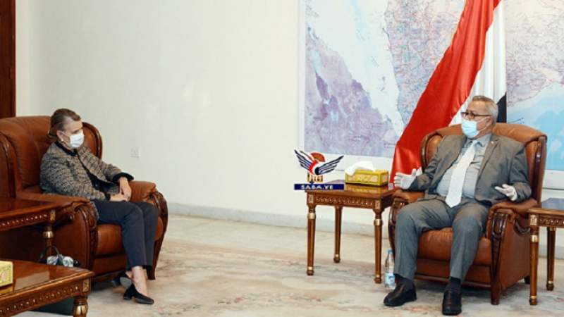 جاء ذلك أثناء لقاء رئيس الوزراء، اليوم الثلاثاء بصنعاء الممثلة المقيمة للأمم المتحدة منسقة الشؤون الإنسانية ليز غراندي، بحضور نائب رئيس الوزراء لشؤون الأمن والدفاع الفريق الركن جلال الرويشان، وزراء التربية والتعليم يحيى الحوثي والدولة الدكتور حميد المزجاجي وعبدالعزيز البكير.