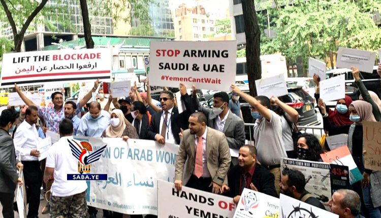 مسيرة راجلة بنيويورك تندد باستمرار العدوان والحصار على اليمن