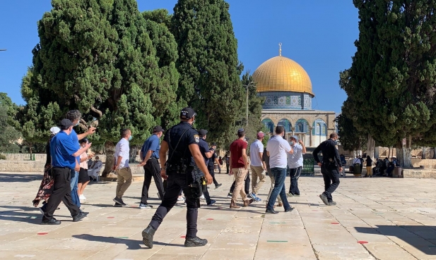 كما جرت عملية اقتحام لساحات الحرم التي تخللها جولات استفزازية انطلاقا من باب المغاربة إلى أن غادروا من باب السلسلة تحت حماية مشددة من قوات العدو الخاصة، ووسط إخلاء ومنع الفلسطينيين من الوصول للمنطقة الشرقية للمسجد.