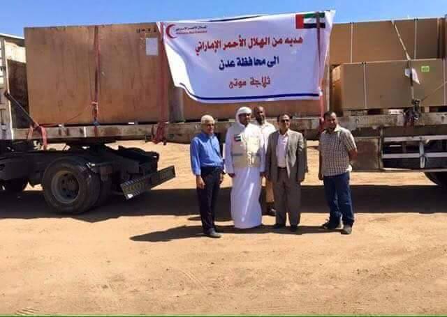 عدن |26يناير|صعدة:نيوز:أرسلت جمعية الهلال الأحمر الإماراتي ثلاجة موتى هدية لمحافظ عدن عيدروس الزبيدي.