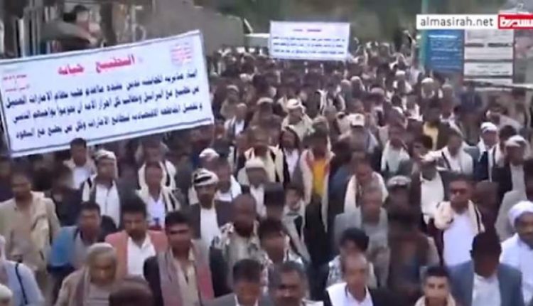 نظم أبناء ومشائخ وأعيان ووجهاء مديرية المحابشة بحجة مسيرة ووقفة احتجاجية تنديدا بإستمرار العدوان السعودي الأمريكي على اليمن.