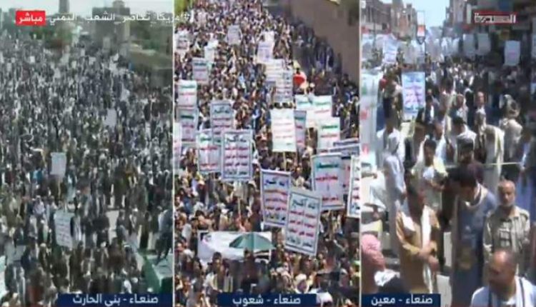 وخرجت في العاصمة صنعاء عشر مسيرات بمشاركة جماهيرية حاشدة في مديرية بني الحارث: “الروضة أمام الجامع الكبير”، وفي الثورة “شارع صوفان غرب مجلس الشورى” وفي شعوب “شارع مارب جوار مصنع الغزل والنسيج” وفي معين أمام “جامعة صنعاء الخط الدائري جولة الشهداء”، وفي التحرير “جنوب الجامعة القديمة” وفي الصافية: شارع العشرين المتفرع من شارع الثلاثين وفي الوحدة “شرق وزارة المالية” وفي السبعين “جنوب حديقة السبعين وفي أزال شارع الأربعين أمام موفميك”.