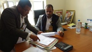 إطلع محافظ محافظة صعدة محمد جابر عوض على سير العمل بمكتب الضرائب بالمحافظة.