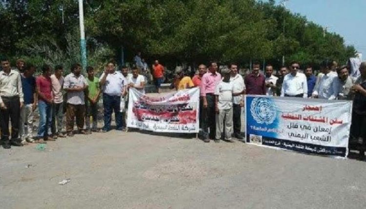 موظفو شركة النفط بالحديدة ينددون باستمرار احتجاز سفن المشتقات النفطية