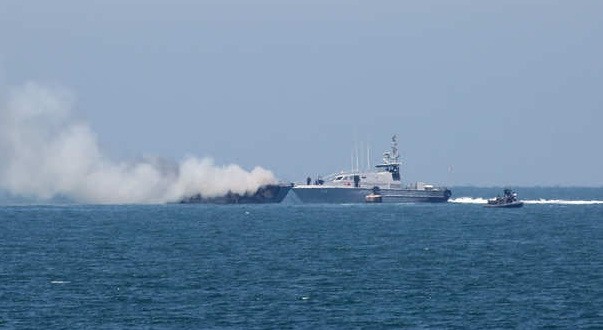 الجيش واللجان الشعبية يستهدفون ثلاثة زوارق حربيه تابعه للغزاة قبالة سواحل المخاء بتعز .
