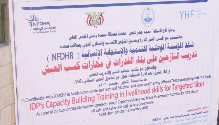 بدأ بمحافظة صعدة اليوم برنامج تدريب النازحين على بناء القدرات في مهارات كسب العيش، تنظمه المؤسسة الوطنية للتنمية والاستجابة الإنسانية بدعم صندوق اليمن الإنساني.