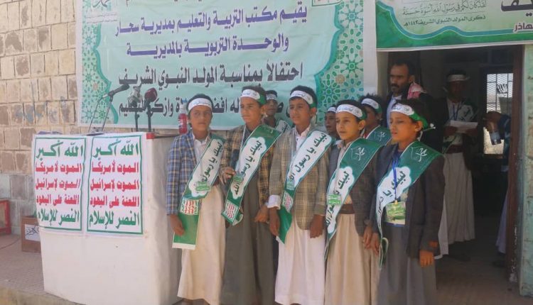 نظم الجانب التربوى لمدارس عزلة المهاذر بمديرية سحار صعدة اليوم فعالية خطابية وثقافية احياءا لذكرى المولد النبوي الشريف .