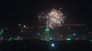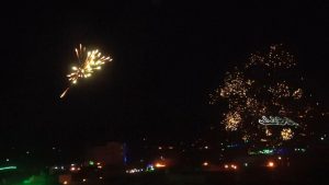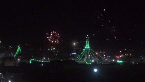 وأشتعلت سماء المدينة بالألعاب الناریة الذي جعلھا أشبه بمدینة تتلألأ وكأنھا مدینة للنجوم الملونة تبعث للناظر بھجة الشعور وتدخل قلب كل محب لرسول الله صلى الله علیه وآله وسلم.