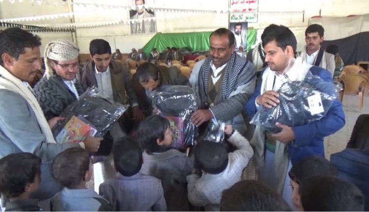 توزيع الحقيبة المدرسية على أبناء الشهداء في ضحيان بصعدة