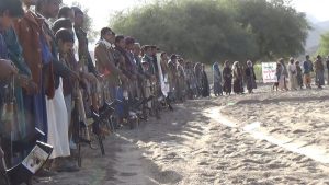 وأكد المشاركون على أن كل محاولات الترهيب ستزيد الشعب صلابة وتحدٍ لمواصلة الصمود ودعم الجبهات بالمال والرجال وكسر شوكة قوى العدوان والمرتزقة .. مؤكدين أن الإرهاب الأمريكي زائل لا محالة بفضل الله وصمود وثبات الشعب اليمني المظلوم