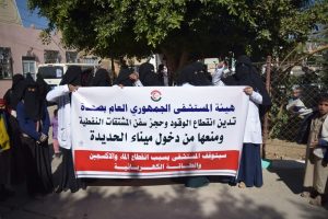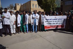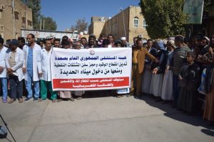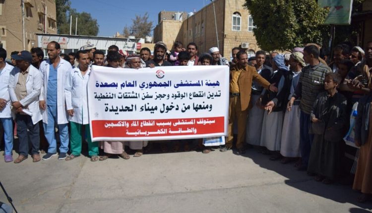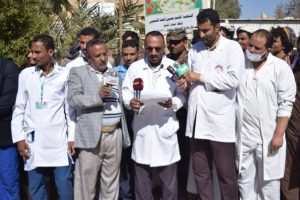 هيئة المستشفى الجمهوري بصعدة تنظم وقفة احتجاجية تنديداً باستمرار احتجاز السفن النفطية