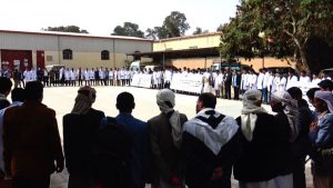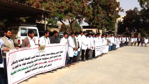 فيما حمل بيان الوقفة الأمم المتحدة مسئولية توقف المنشآت الصحية وخدماتها نتيجة صمتها وتغاضيها والمجتمع الدولي والمنظمات الإنسانية عن جرائم العدوان.