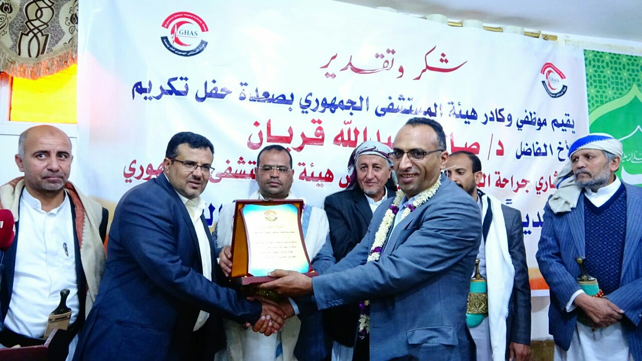 صعدة : تكريم رئيس هيئة المستشفى الجمهوري العام بصعدة