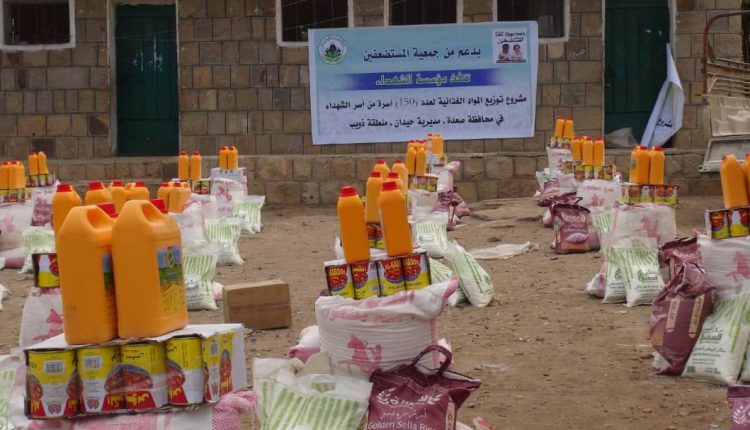 صعدة : تدشين توزيع سلال غذائية لأسر شهداء منطقة ذويب السفلى بصعدة
