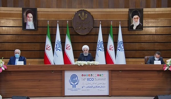 وقال روحاني ، اليوم الخميس ، امام القمة الـ 14 لمنظمة التعاون الاقتصادي (ايكو) ، التي عقدت افتراضيا تحت شعار “التعاون الاقتصادي الإقليمي في عصر ما بعد كورونا” بمشاركة قادة 10 دول أعضاء : انه رغم الطاقات التجارية الكبيرة الكامنة وتوال البنية التحتية اللازمة ، لا تزال التجارة البينية بين دول منظمة التعاون الاقتصادي أقل من 10٪ ، وهو أمر غير مقبول على الإطلاق.