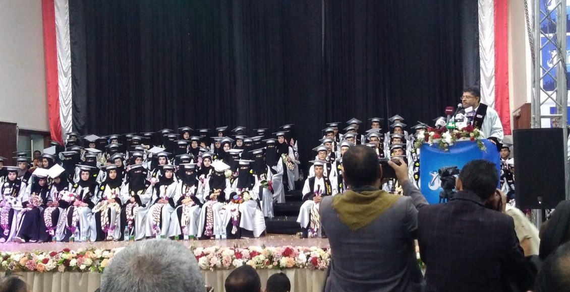 وخلال حفل التكريم الذي نظمته وزارة التربية والتعليم صباح اليوم بصنعاء، قال عضو المجلس السياسي الأعلى محمد علي الحوثي، إن تخرج هذه الدفعة من رواد العلم في اليمن يمثل انتصارا جليا للجبهة التعليمية أمام مشاريع العدوان الظلامية.. مؤكداً وجود خطط كثيرة وكبيرة من أجل تطوير العملية التعليمية وسيرى العالم قريباً نهضة علمية كبيرة في اليمن.. قائلا ” سنتحرك في مواجهة الجهل وأهله ومن يعتدي علينا هم اليوم من يمثله”.
