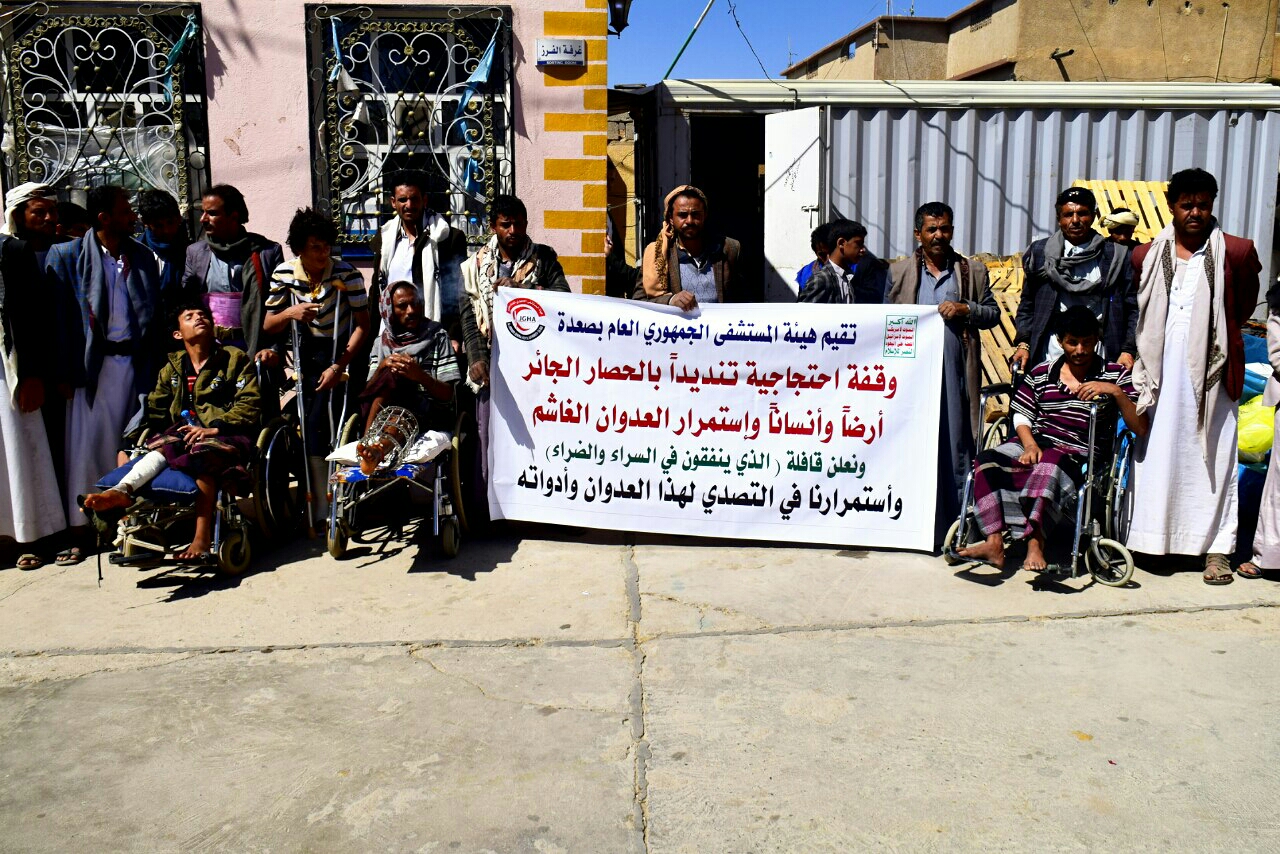 نظمت هيئة المستشفى الجمهوري العام بصعدة اليوم وقفة احتجاجية تنديداً بالحصار الجائر على اليمن ارضاً وانساناً واستمرار العدوان الغاشم.