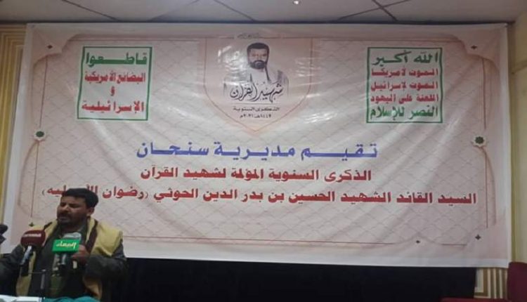 أقيمت بمديرية سنحان محافظة صنعاء، اليوم الجمعة، فعالية ثقافية لإحياء الذكرى السنوية للشهيد القائد السيد حسين بدر الدين الحوثي.