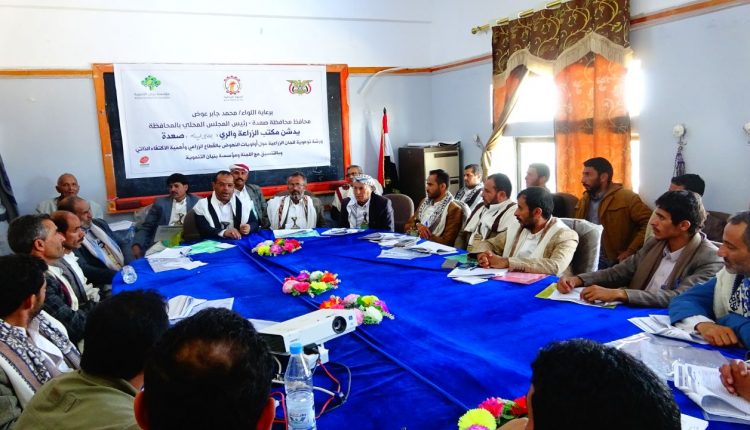 عُقدت بمديرية صعدة اليوم ورشة عمل تدريبية للجان الزراعية حول أولويات النهوض بالقطاع الزراعي وتحقيق الاكتفاء الذاتي، نظمها مكتب الزراعة والري بالمديرية بالتنسيق مع اللجنة الزراعية بالمحافظة ومؤسسة بنيان التنموية .