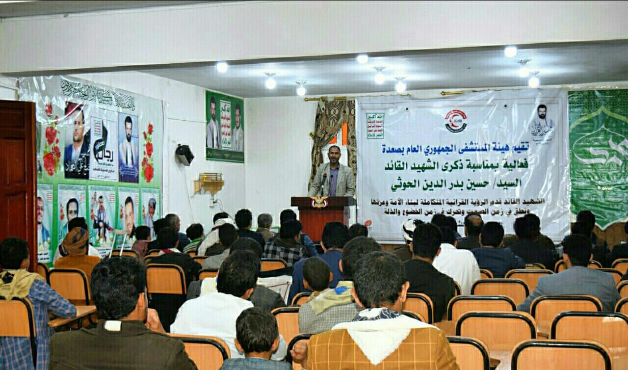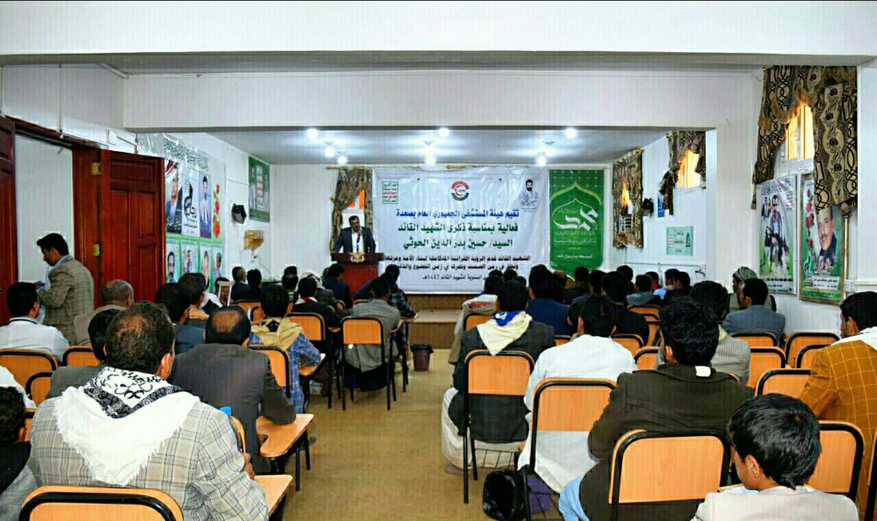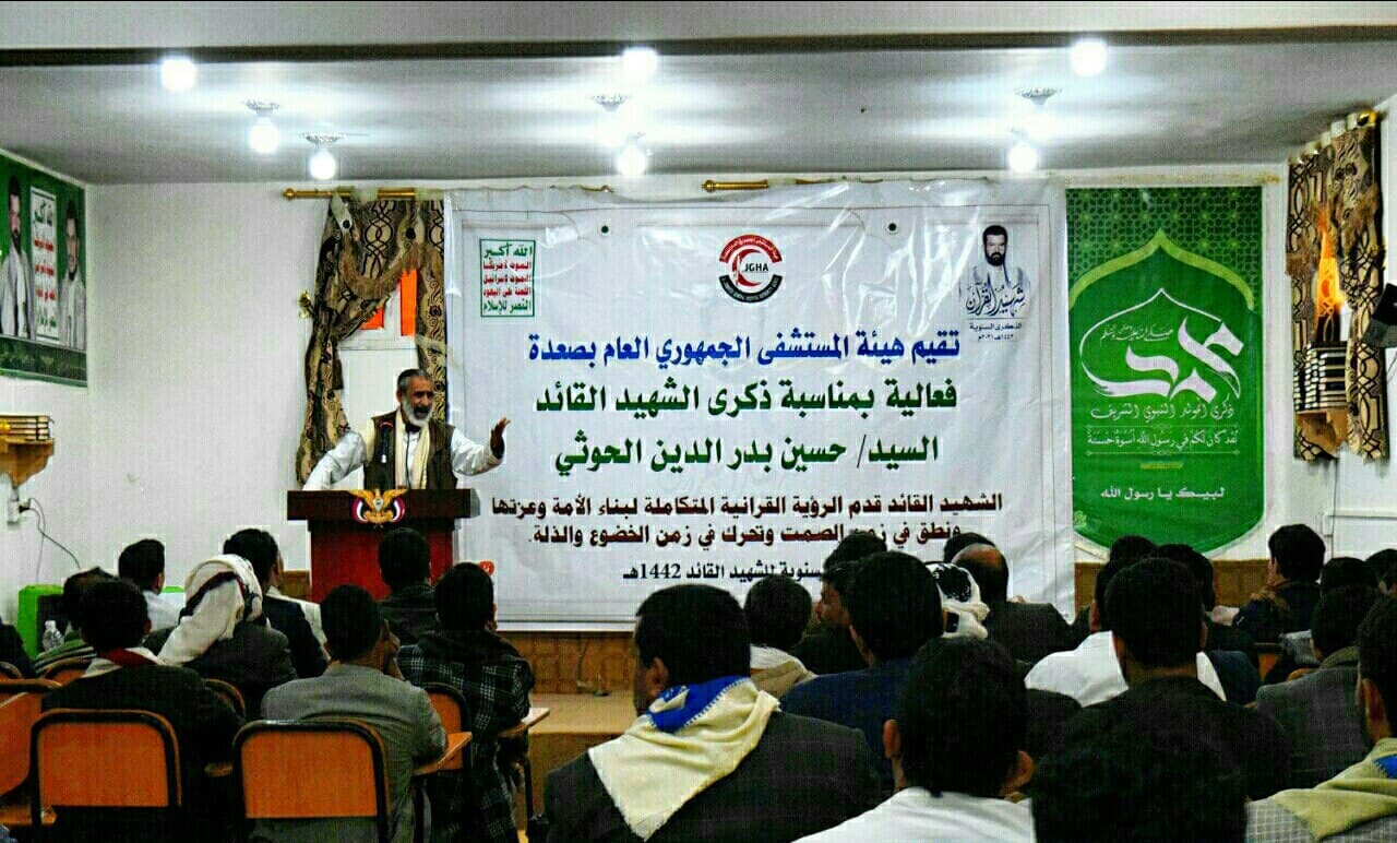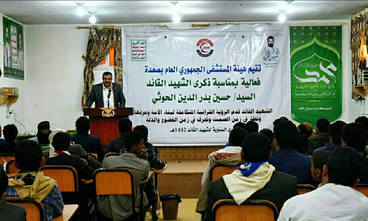 نظمت هيئة المستشفى الجمهوري العام بصعدة اليوم فعالية بذكرى سنوية الشهيد القائد حسين بدر الدين الحوثي وفي الفعالية أشار رئيس الهيئة الدكتور إسماعيل الورفي إلى أهمية إحياء الذكرى السنوية للشهيد القائد الذي وقف في مواجهة قوى الهيمنة والاستكبار العالمي.