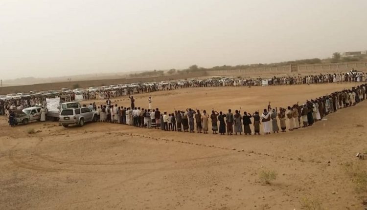 أبناء مستبأ بحجة ينظمون وقفة احتجاجية في ذكرى مجزرة سوق الخميس