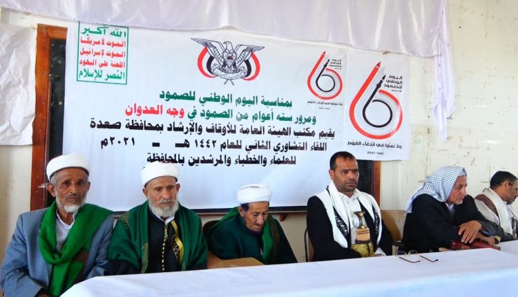عقد بمحافظة صعدة اليوم اللقاء التشاوري الثاني للعلماء والخطباء والمرشدين بالمحافظة وذلك في ذكرى يوم الصمود الوطني ومرور ستة أعوام من الصمود في وجه العدوان، نظمه مكتب الهيئة العامة للأوقاف والإرشاد بالمحافظة.