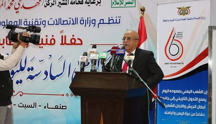 نظمت وزارتا الاتصالات وتقنية المعلومات والكهرباء والطاقة اليوم السبت ، بصنعاء حفلاً فنياً وخطابياً بالتزامن مع الذكرى السادسة لليوم الوطني للصمود.