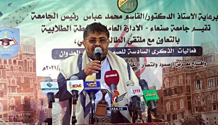 عضو السياسي الأعلى محمد الحوثي يدشن فعاليات الصمود في مواجهة العدوان بجامعة صنعاء