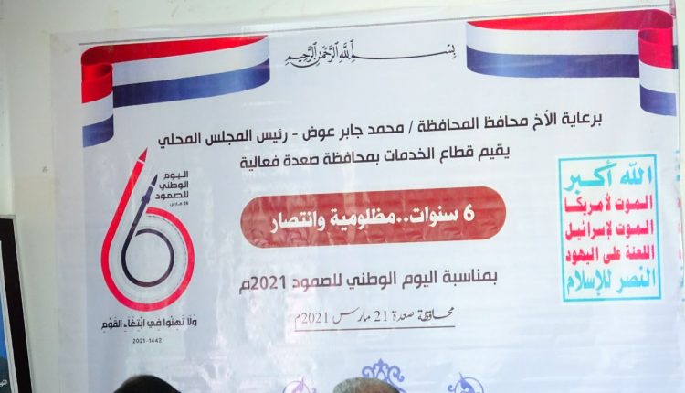 نظم قطاع الخدمات في محافظة صعدة اليوم فعالية يوم الصمود الوطني بحضور محافظ المحافظة اللواء محمد جابر عوض .
