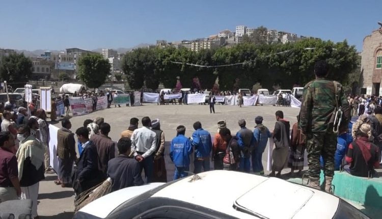مسيرة حاشدة في إب تنديداً باستمرار القرصنة البحرية على سفن الوقود