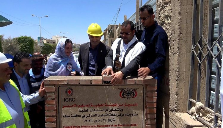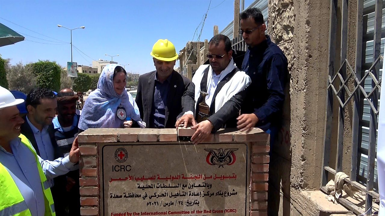 وضع محافظ صعدة محمد جابر عوض ومعه رئيس البعثة الفرعية للجنة الدولية للصليب الأحمر بالمحافظة كخابير خاسيا اليوم حجر الأساس لمشروع بناء مركز إعادة التأهيل الحركي بالمحافظة.