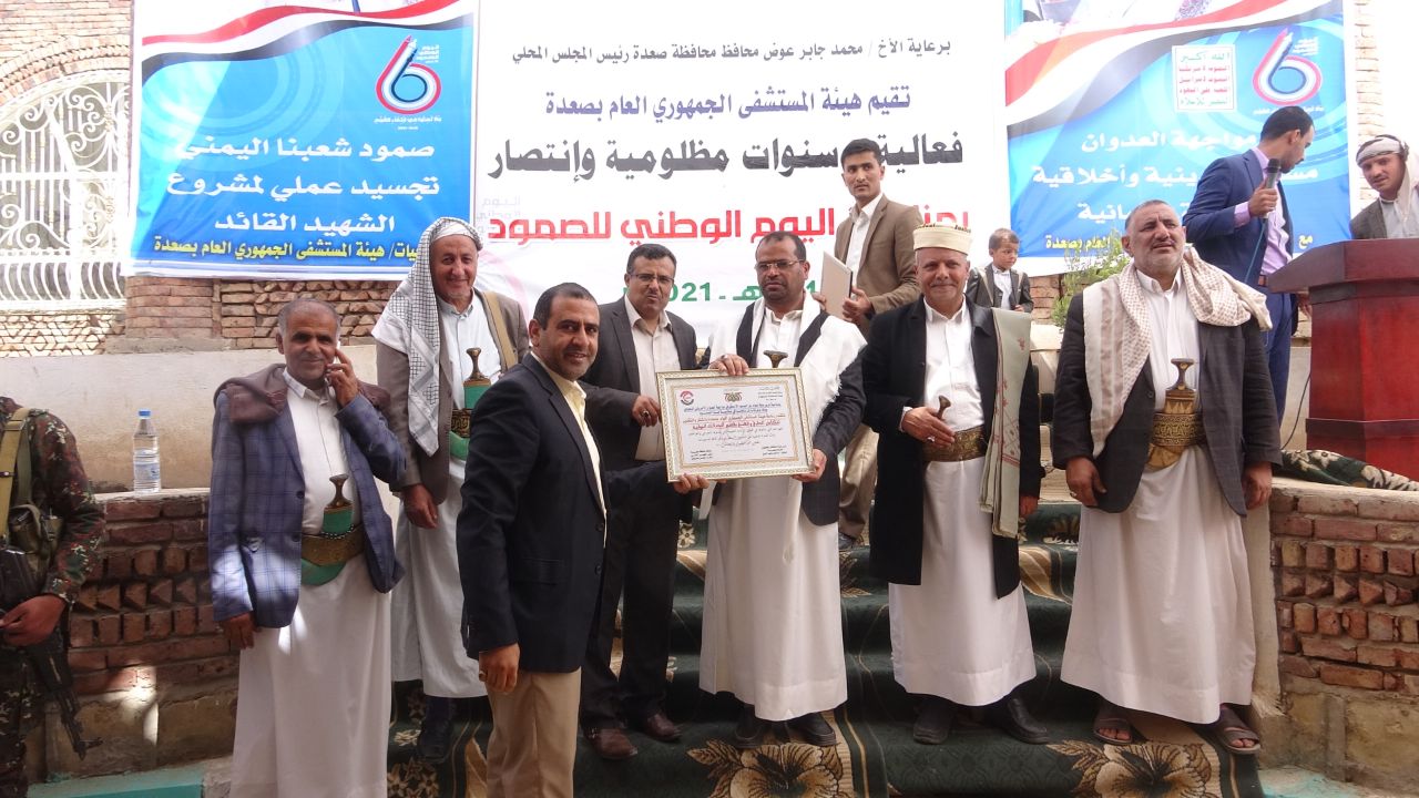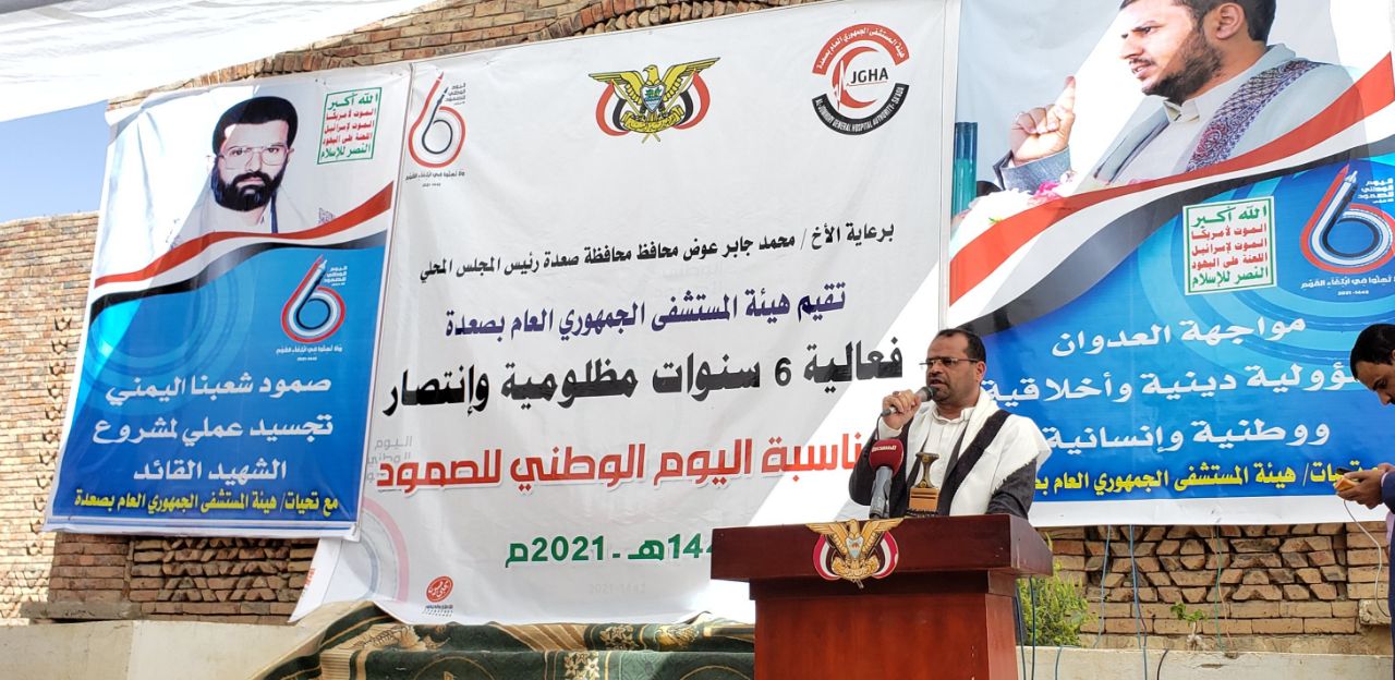 وفي الفعالية أشاد محافظ صعدة محمد جابر عوض، بصمود هيئة المستشفى الجمهوري العام وكادرها الطبي واستمرارها في تقديم الخدمات الطبية والعلاجية للمواطنين رغم استمرار العدوان والحصار.
