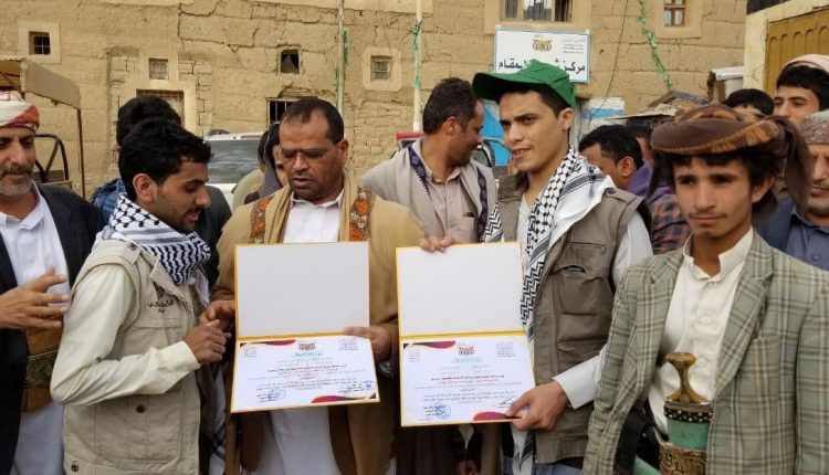 وفي الاستقبال بحضور مدير عام هيئة النقل البري بصعدة نبيل جميل كرم محافظ صعدة الاسيرين المحررين بشهادات تقديرية وهدايا رمزية.
