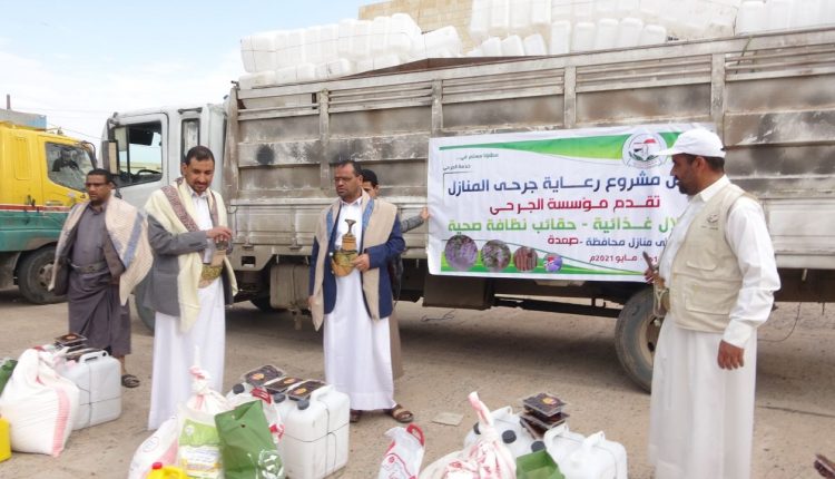 توزيع سلال غذائية وحقائب نظافة صحية لجرحى منازل صعدة
