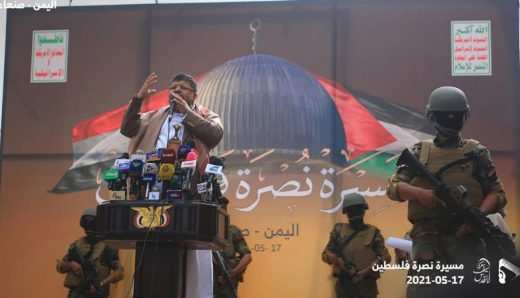 محمد علي الحوثي وفي كلمة له اليوم الاثنين، في المسيرة الجماهيرية الكبرى التي خرجت بالعاصمة صنعاء نصرة للشعب الفلسطيني ، قدم عرضا لقوى العدوان بأن تتوقف كل الجبهات وأن يتوقف العدوان ، مقابل ذهاب قوى العدوان إلى فلسطين وتحرير القدس بطائراتهم وأسلحتهم .. مضيفا ” لن نعتدي ولن نتحرك قيد انملة واذهبوا لتحرير فلسطين واذا كمنتم بحاجة الينا فنحن حاضرون الى جانبكم “.. موضحا أن ذلك من أجل أن نكون في الموقف الصحيح وأن يضرب الطيران الحربي للعدوان في المكان الصحيح.
