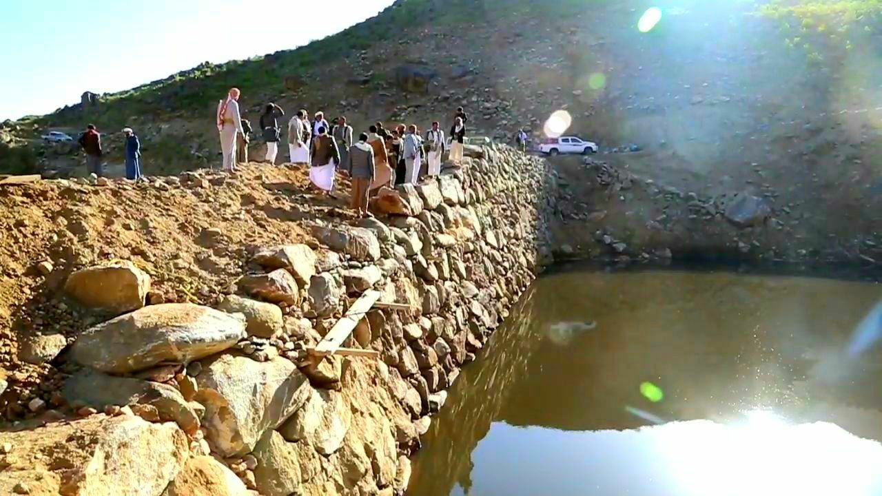 الأعمال الجارية في إنشاء حواجز مائية بمديرية باقم الحدودية حاجز السبطه وحاجز الجله والتي يتم تنفيذها بمشاركة مجتمعية