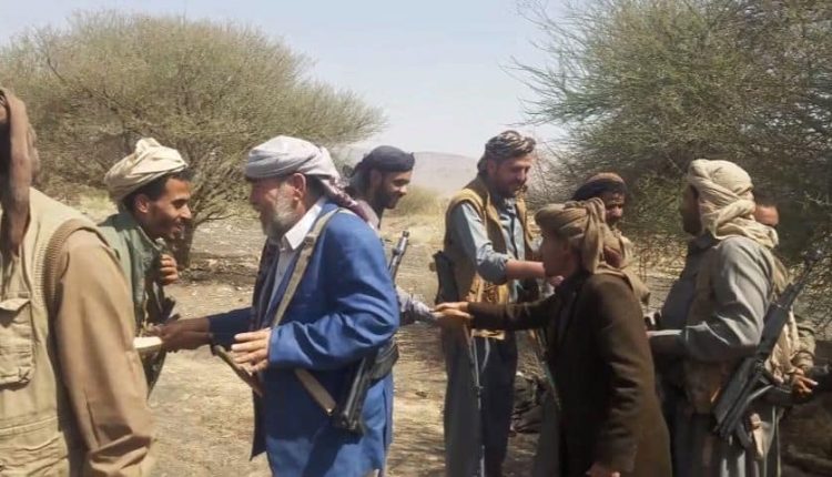 مشائخ ووجهاء سنحان يزورون المرابطين في جبهة مأرب
