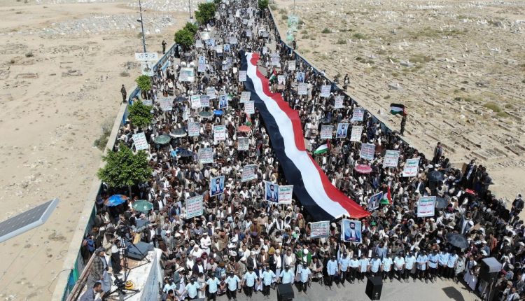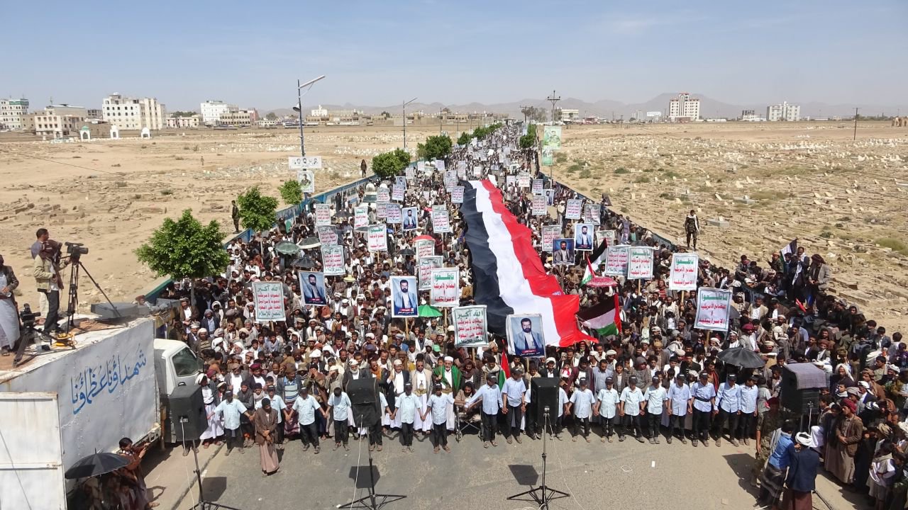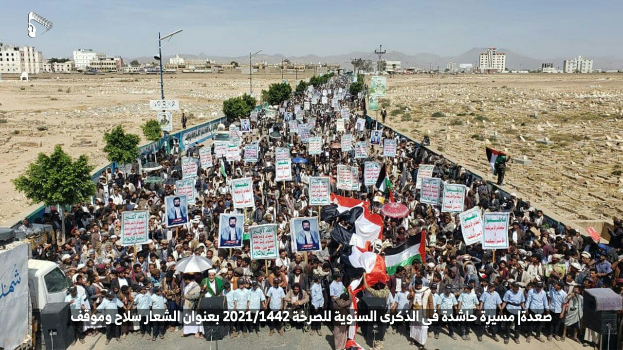 وردد المشاركون في المسيرة الحاشدة هتافات البراءة من أعداء الأمة، منددين بالجرائم الأمريكية وحلفاؤها بحق شعوب المنطقة.